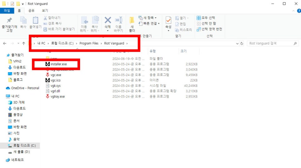 생각보다 롤 뱅가드 오류의 해결 방안은 간단합니다. 뱅가드 응용 프로그램을 삭제 후 재설치하는 것인데요. 먼저 뱅가드 프로그램이 설치된 폴더로 접속한 후 뱅가드 폴더 안의 installer.exe를 더블클릭한 후 예를 눌러주면 됩니다.