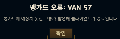 롤 뱅가드 오류란 롤을 실행하여 게임을 진행하는 중 뱅가드 오류 : VAN 84라는 메시지가 뜨면서 뱅가드에 예상치 못한 오류가 발생해 클라이언트가 종료됩니다. 라고 나오며 접속이 종료되는 오류입니다. 때로는 뱅가드 오류 : VAN 68 등으로 다른 오류 코드가 뜨기도 합니다.
